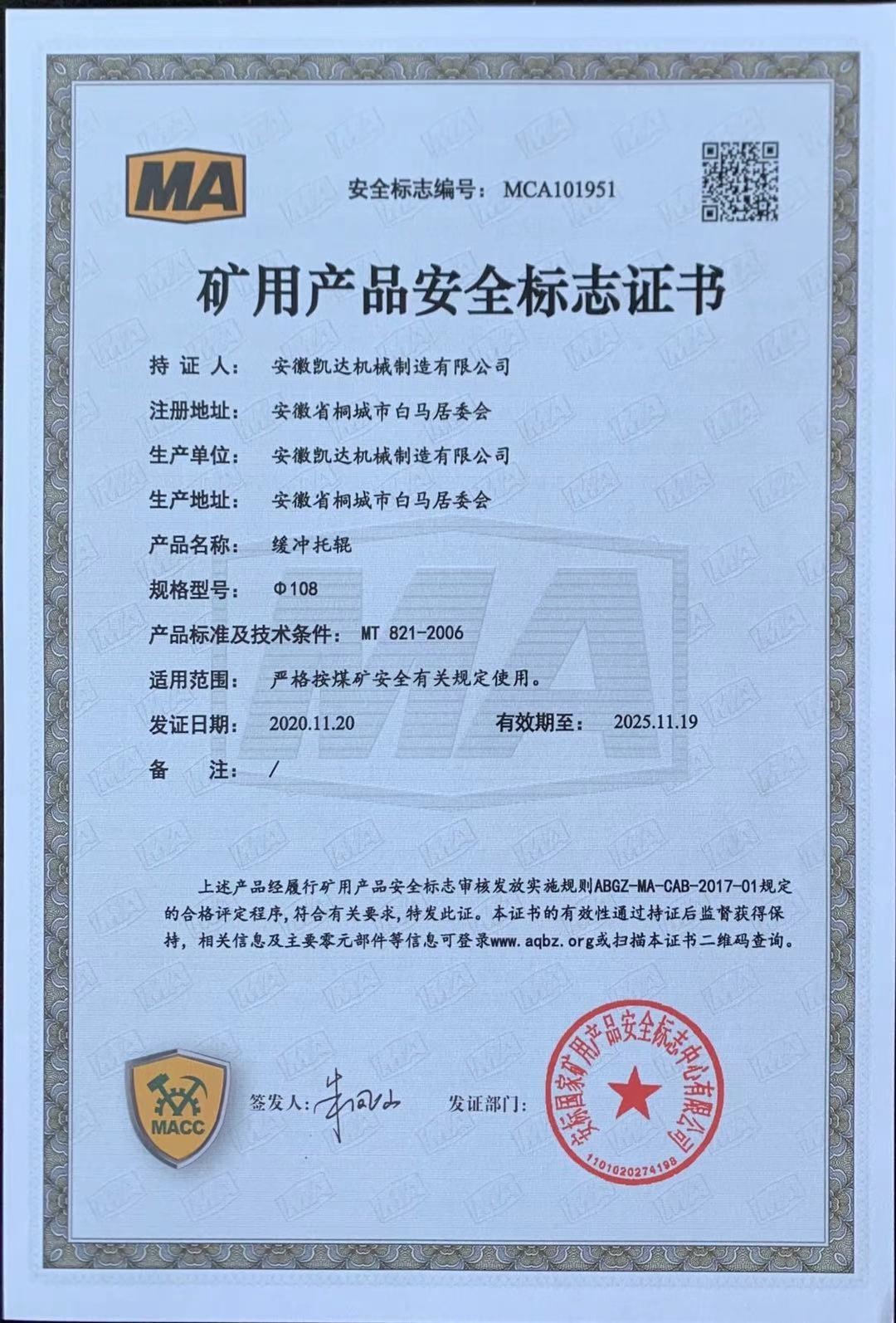 礦用產(chǎn)品安全標志證書(shū)-緩沖托輥2