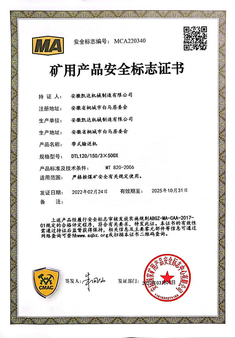 礦用產(chǎn)品安全標志證書(shū)-帶式輸送機56