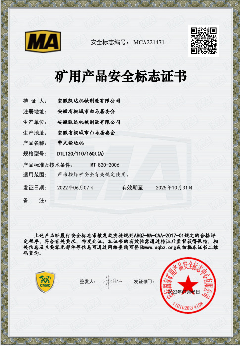 礦用產(chǎn)品安全標志證書(shū)-帶式輸送機55