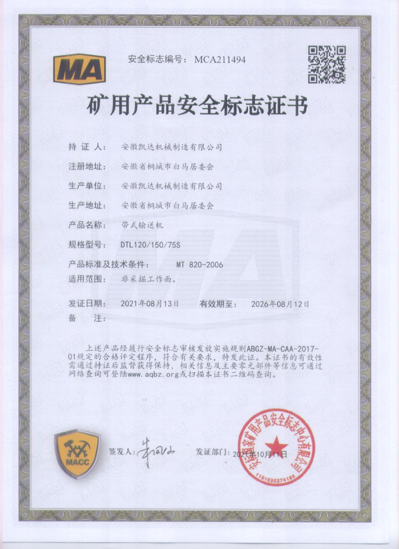 礦用產(chǎn)品安全標志證書(shū)-帶式輸送機53