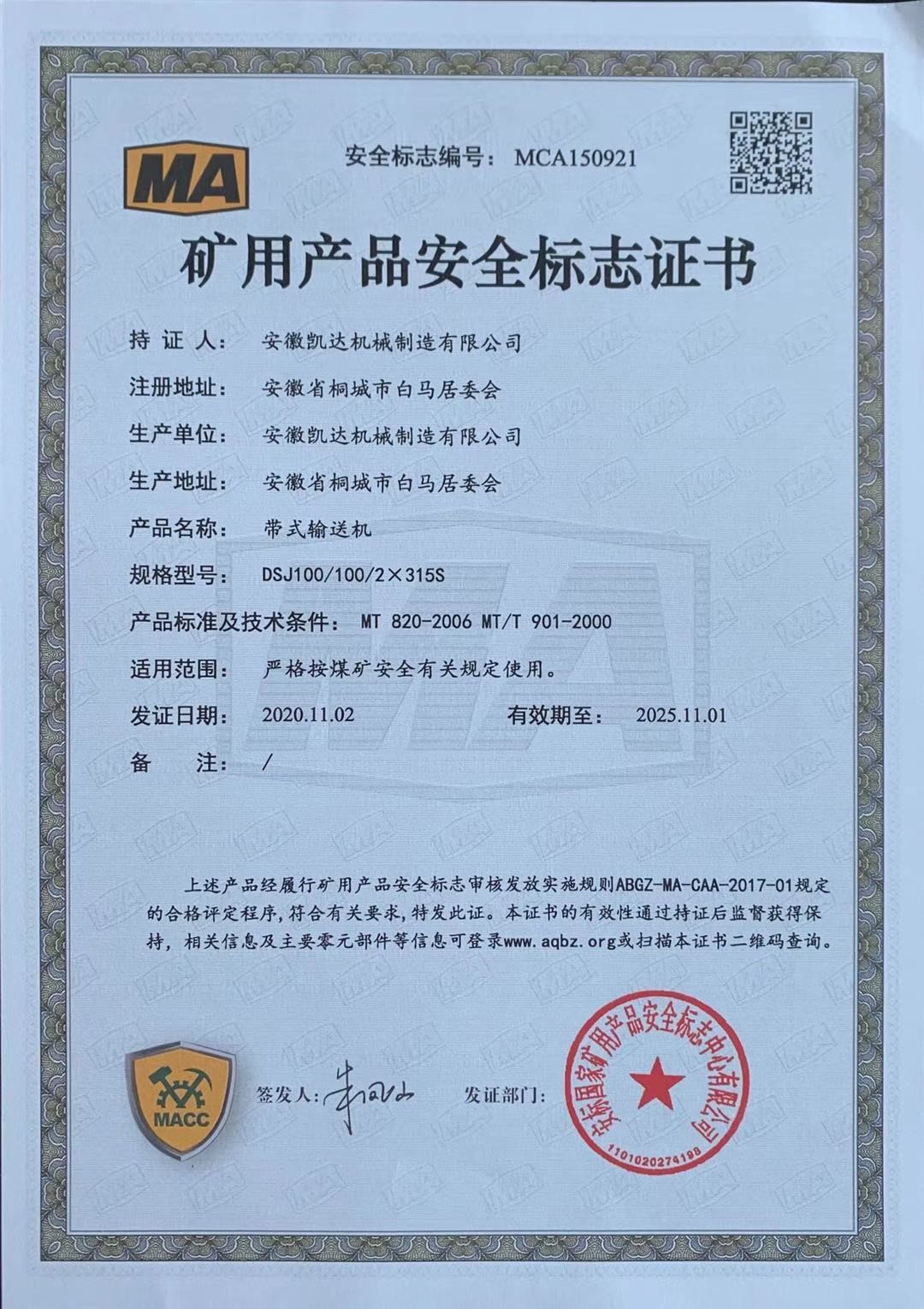 礦用產(chǎn)品安全標志證書(shū)-帶式輸送機49