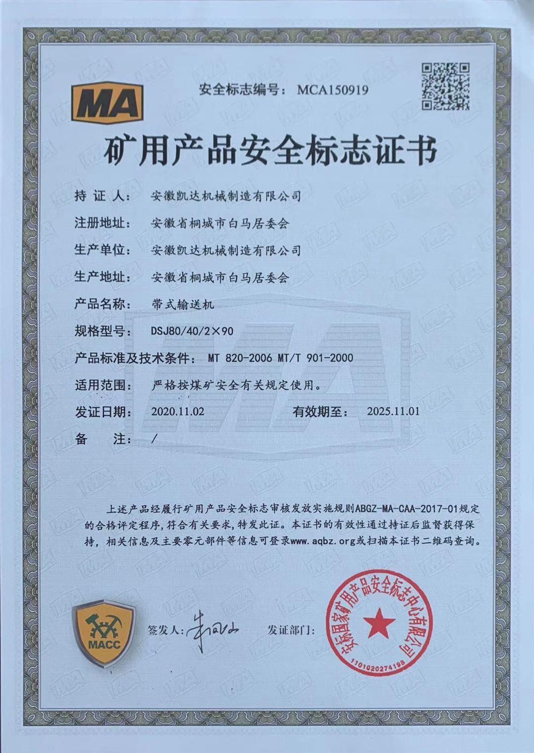 礦用產(chǎn)品安全標志證書(shū)-帶式輸送機47