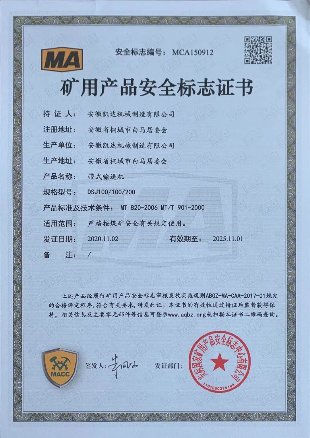 礦用產(chǎn)品安全標志證書(shū)-帶式輸送機40