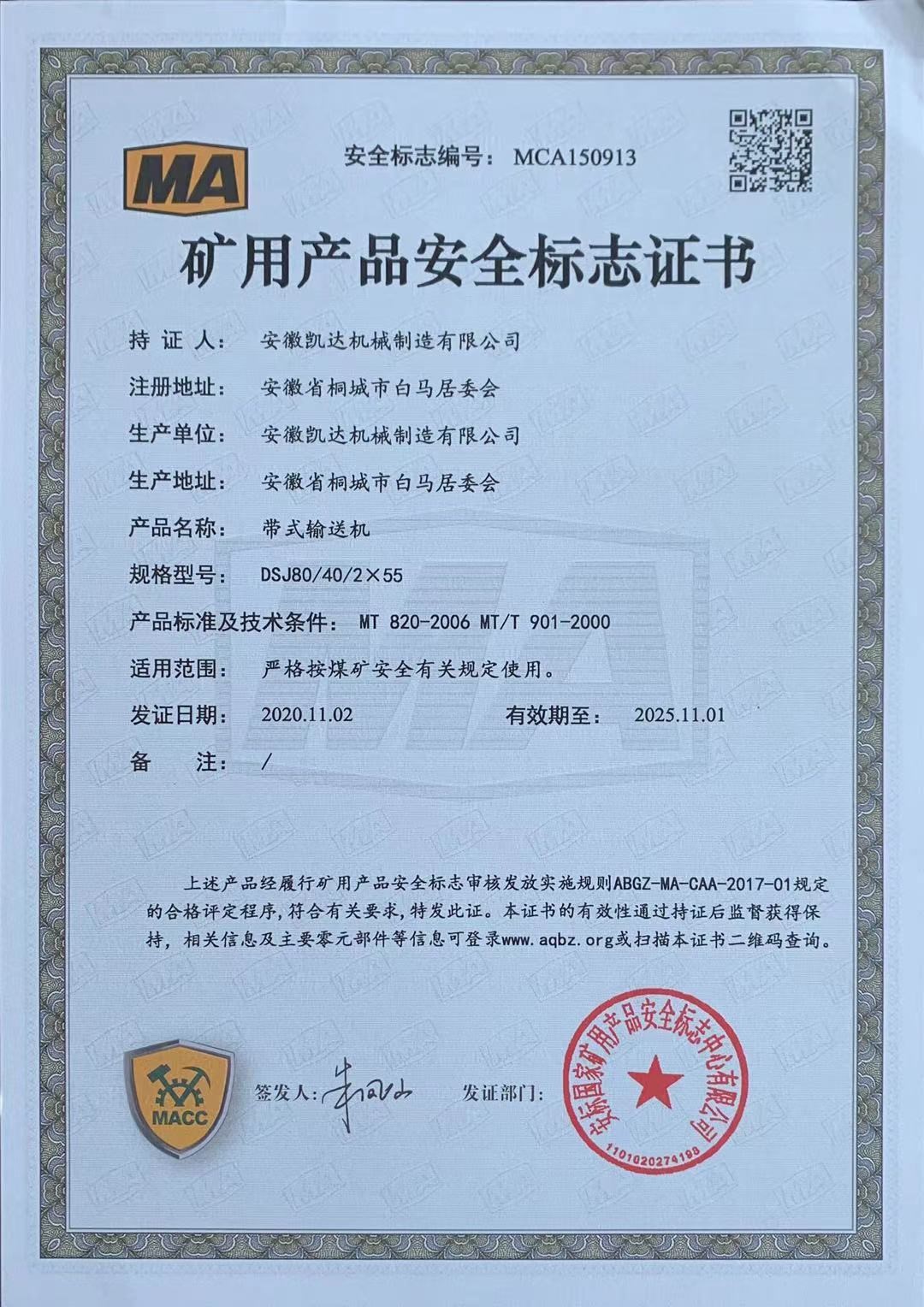 礦用產(chǎn)品安全標志證書(shū)-帶式輸送機41