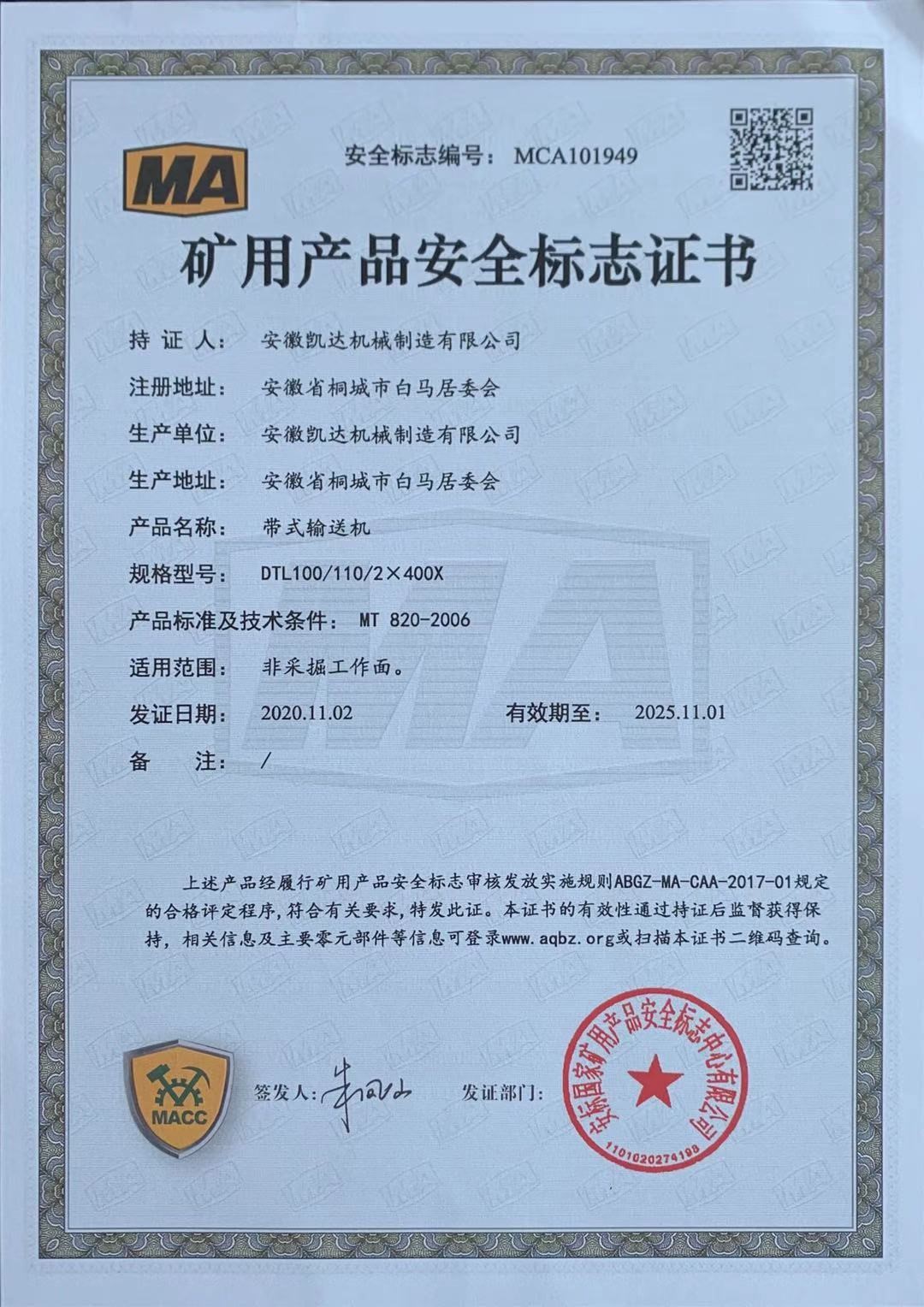 礦用產(chǎn)品安全標志證書(shū)-帶式輸送機38