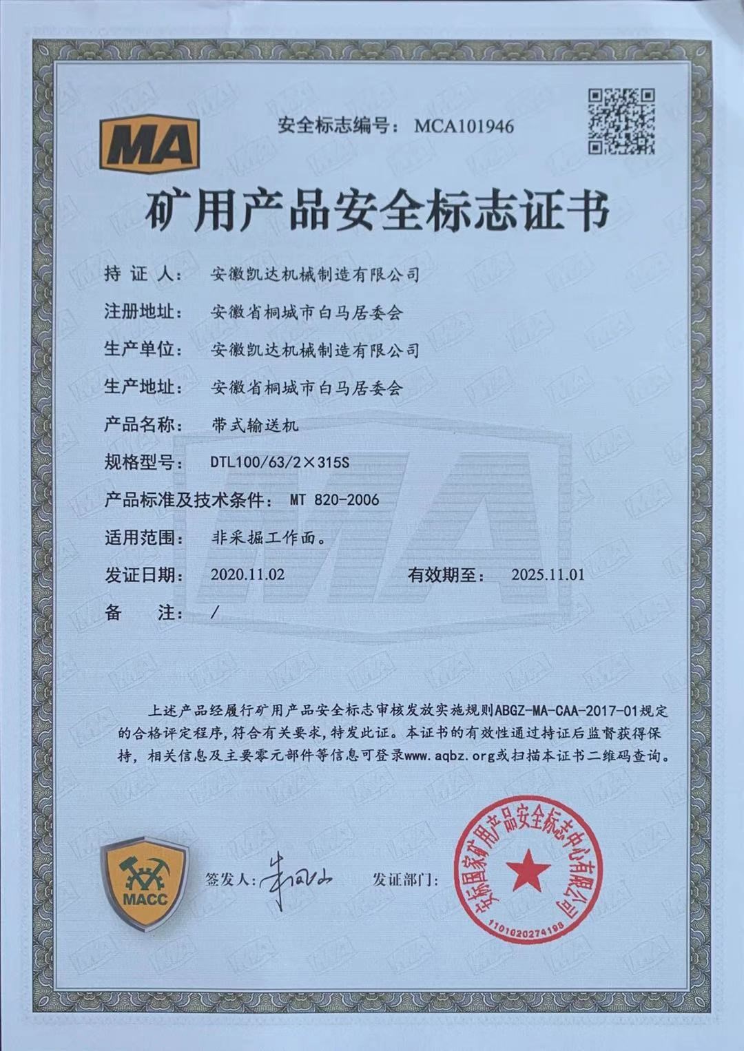 礦用產(chǎn)品安全標志證書(shū)-帶式輸送機35