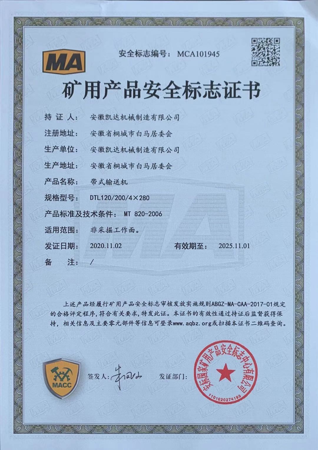 礦用產(chǎn)品安全標志證書(shū)-帶式輸送機34