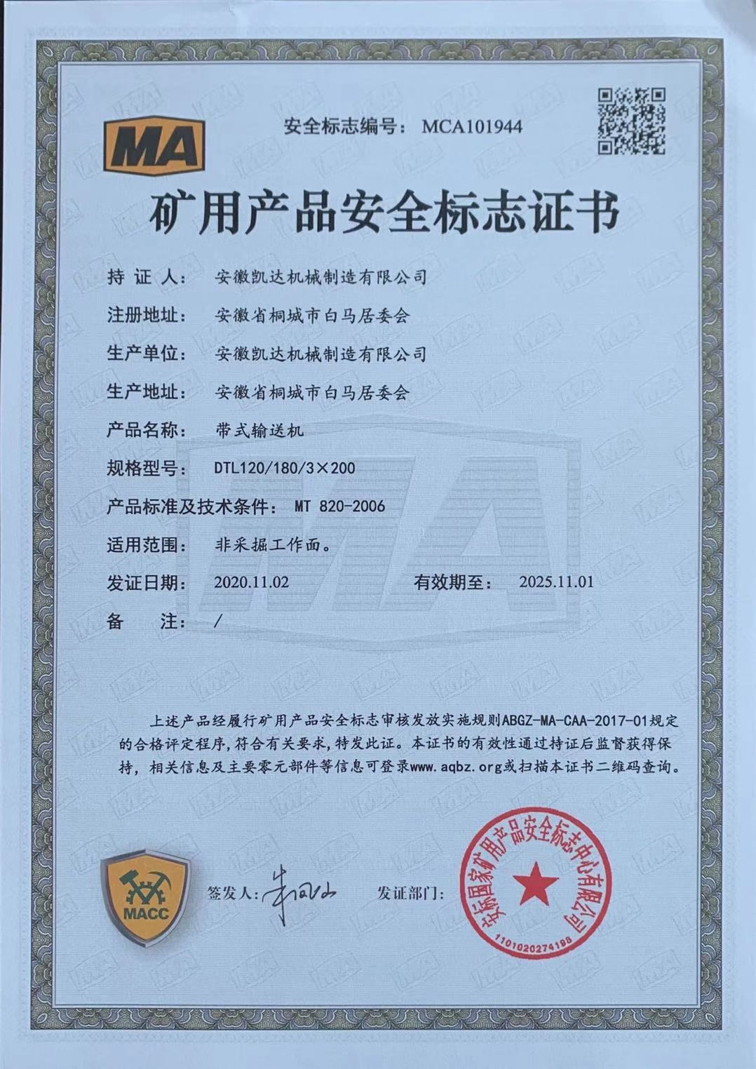 礦用產(chǎn)品安全標志證書(shū)-帶式輸送機33