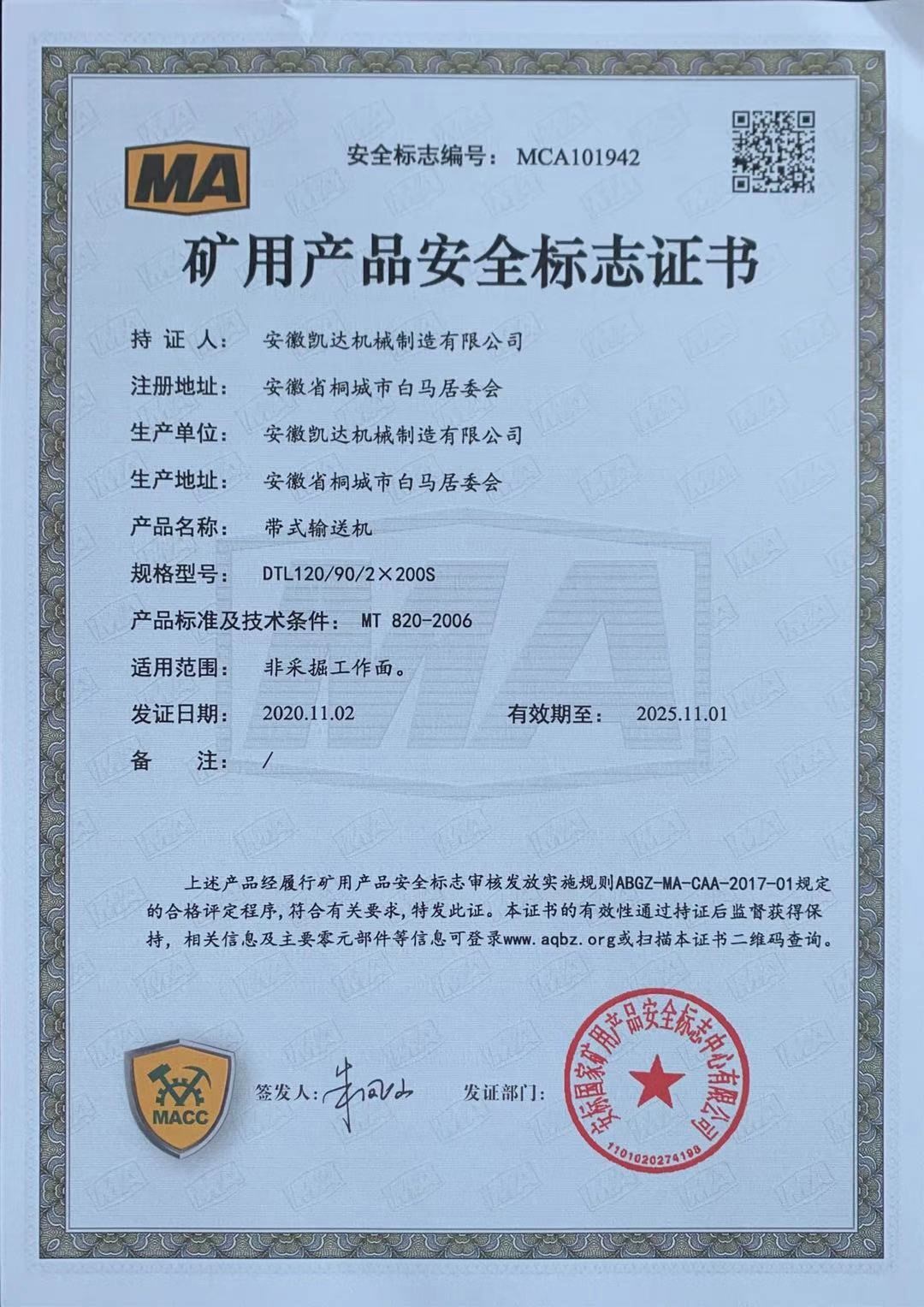 礦用產(chǎn)品安全標志證書(shū)-帶式輸送機31