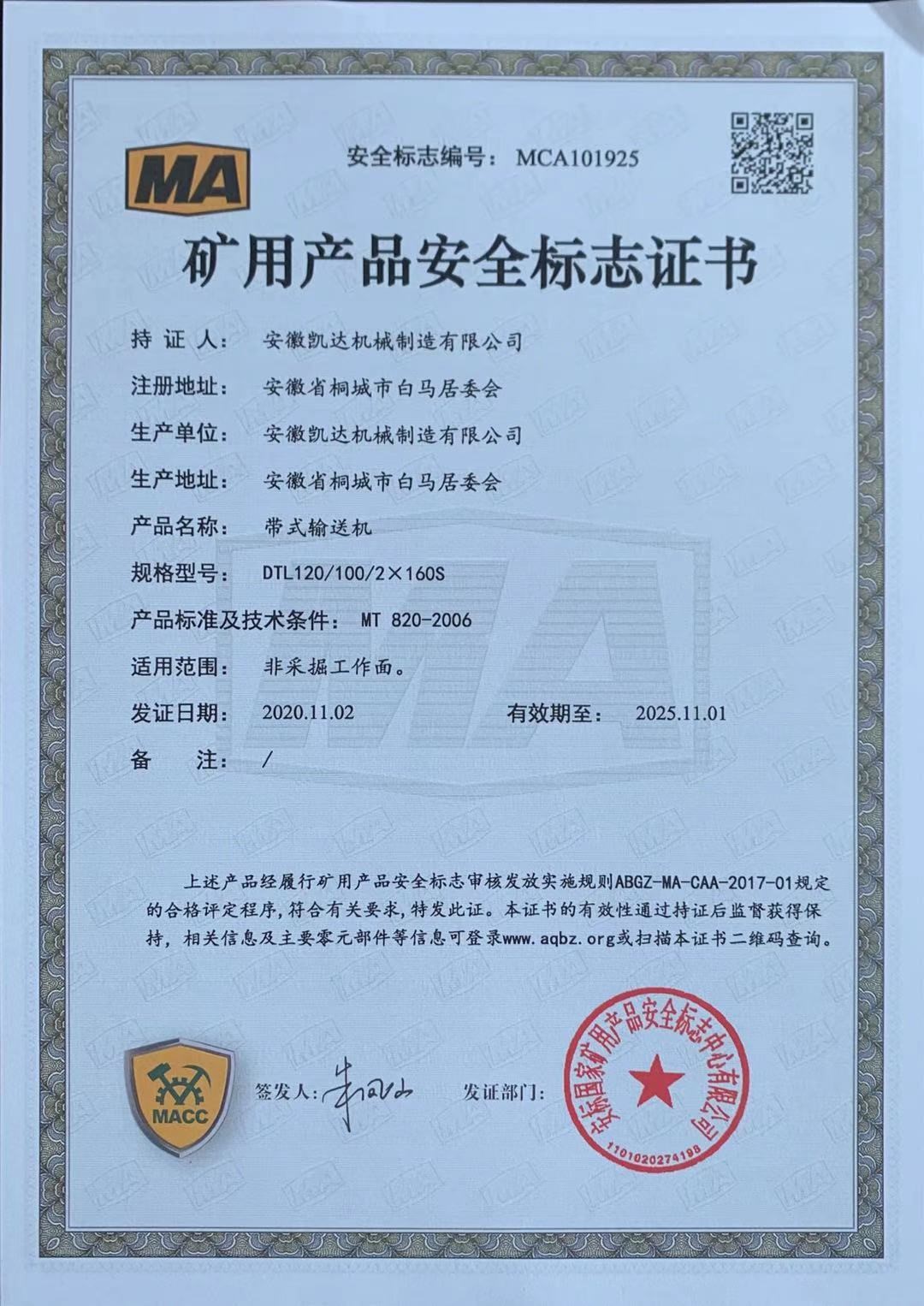 礦用產(chǎn)品安全標志證書(shū)-帶式輸送機14
