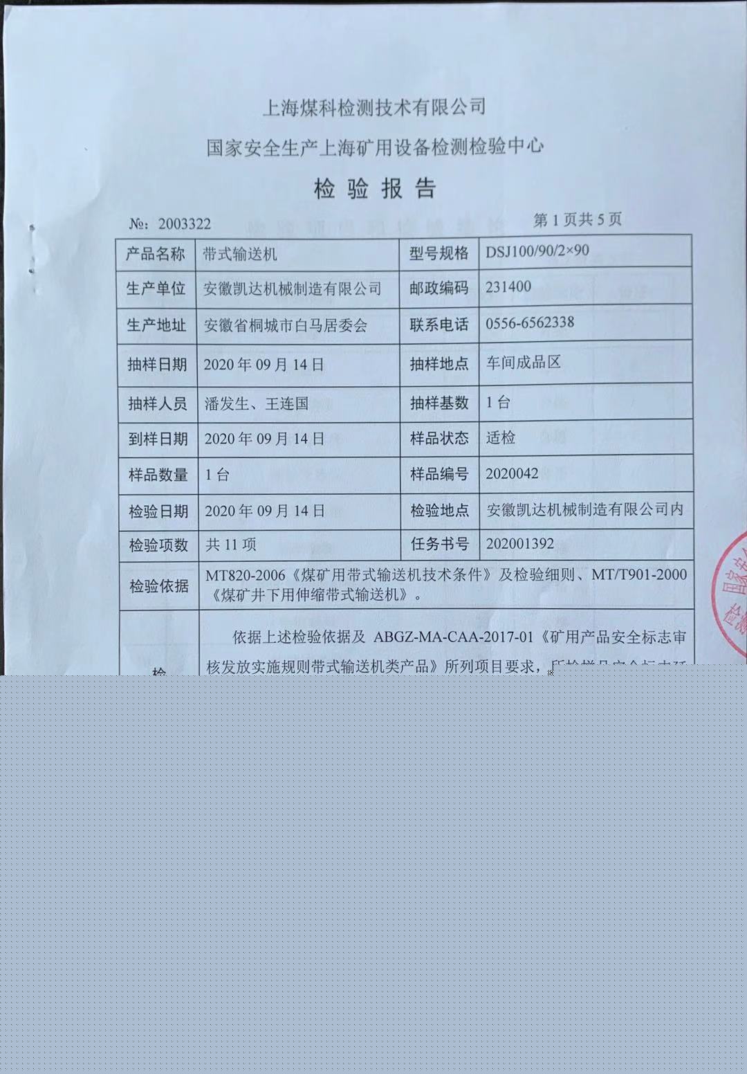 2020檢驗報告 - 帶式輸送機DSJ100-90-2X90