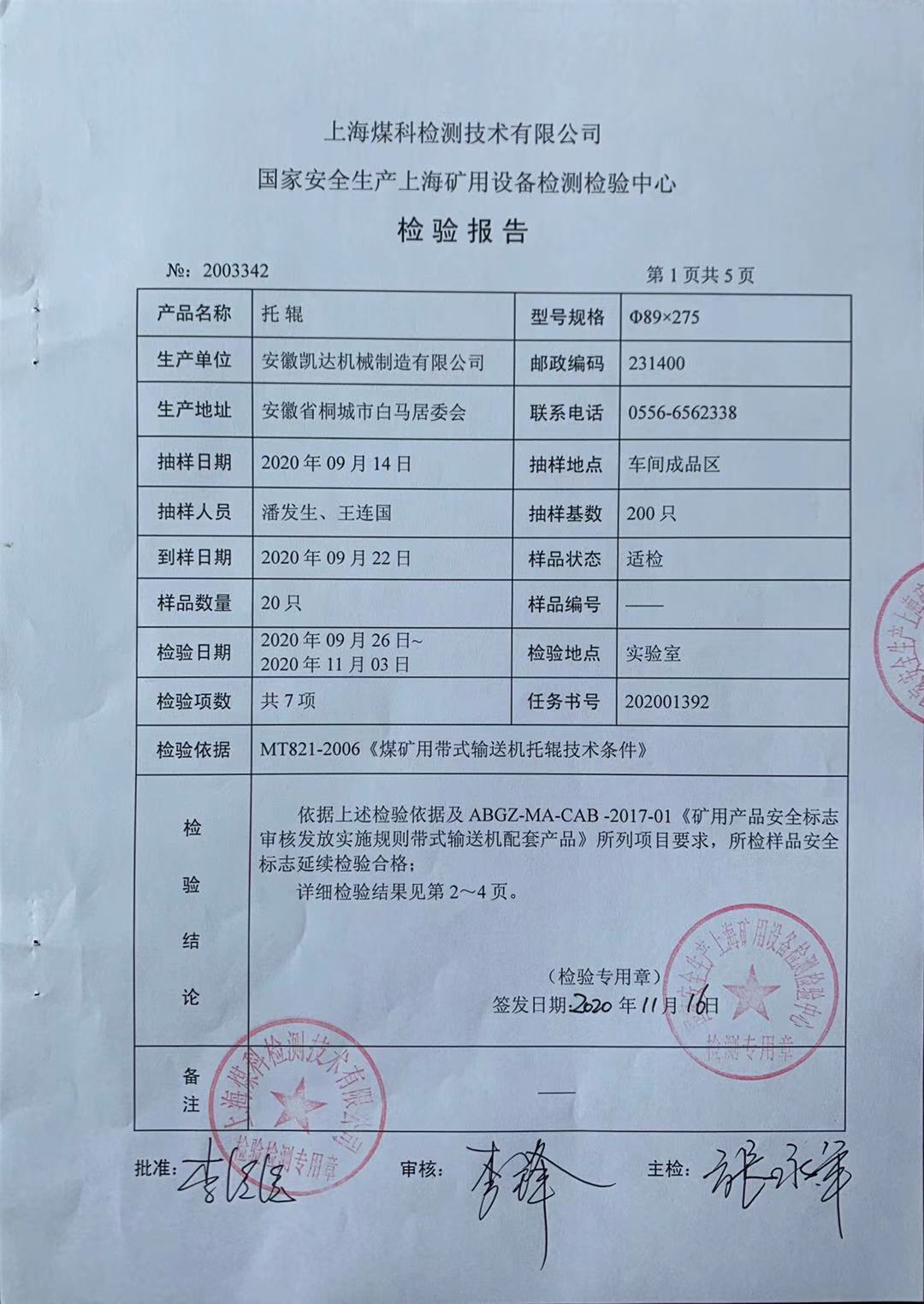 2020檢驗報告 - 托輥89X275